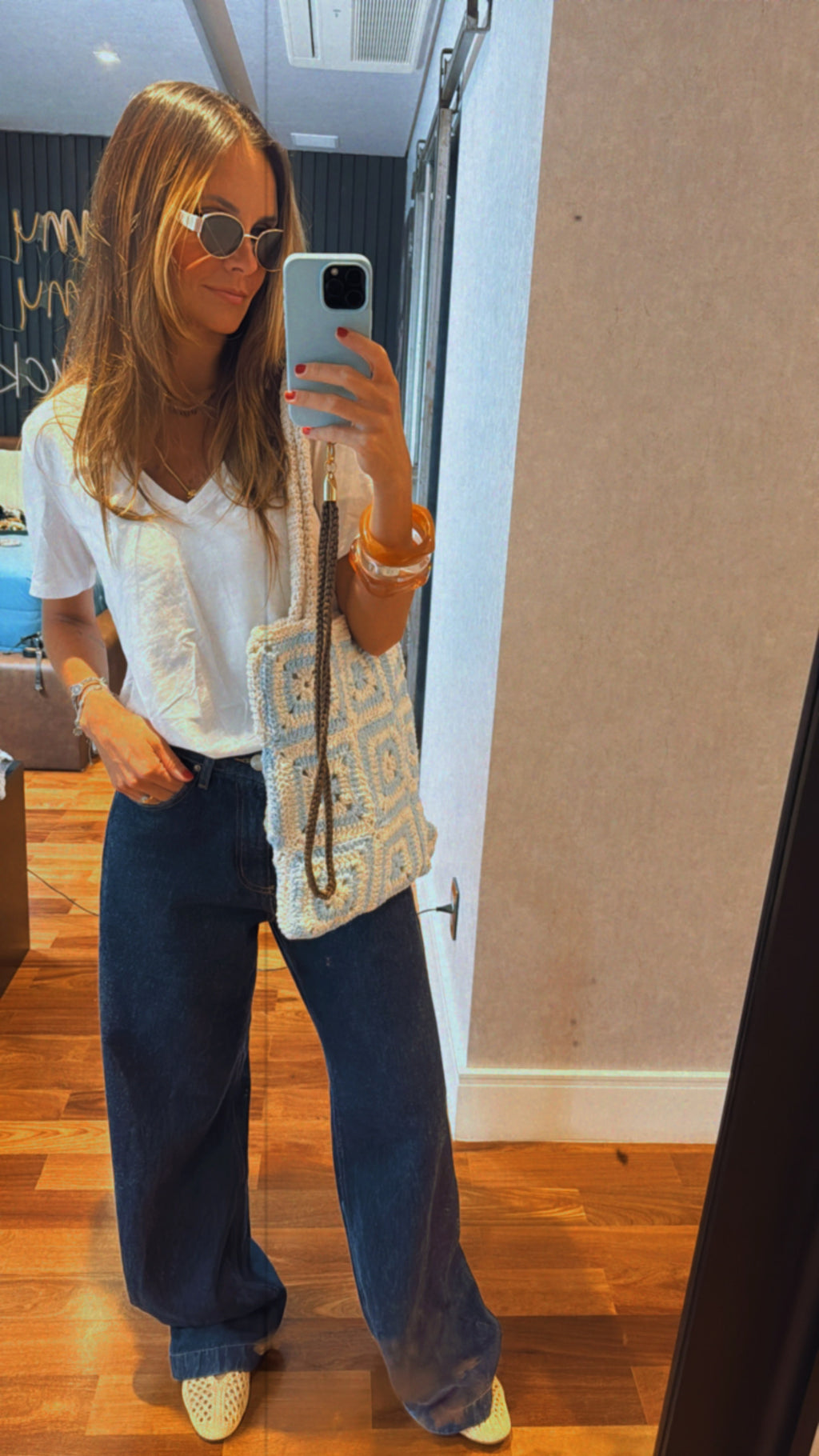 Bolsa handmade, em quadrados “square”, forrada com bolso interno!